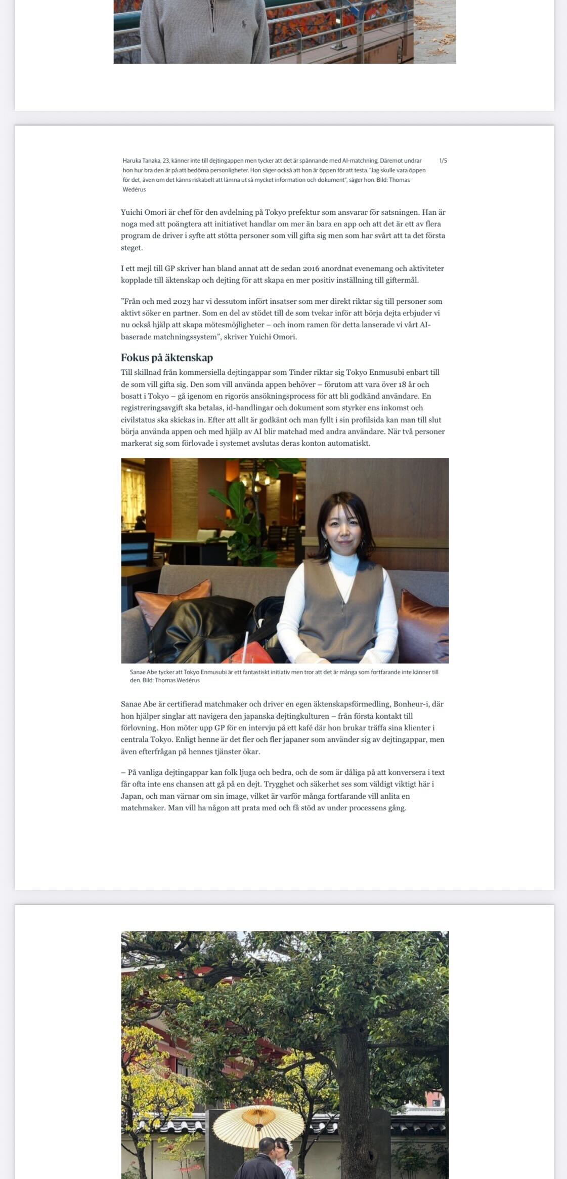 スウェーデン新聞Göteborgs-Posten掲載のお知らせ|新宿のオンライン結婚相談所が海外取材を受けました。